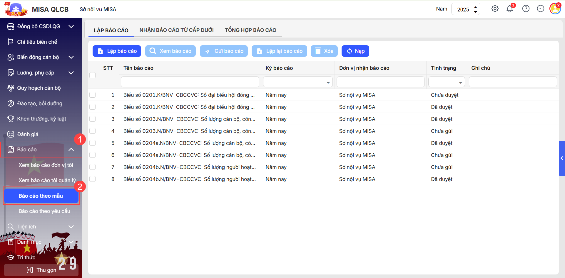 - Anh/chị vào menu Báo cáo\Báo cáo theo mẫu.