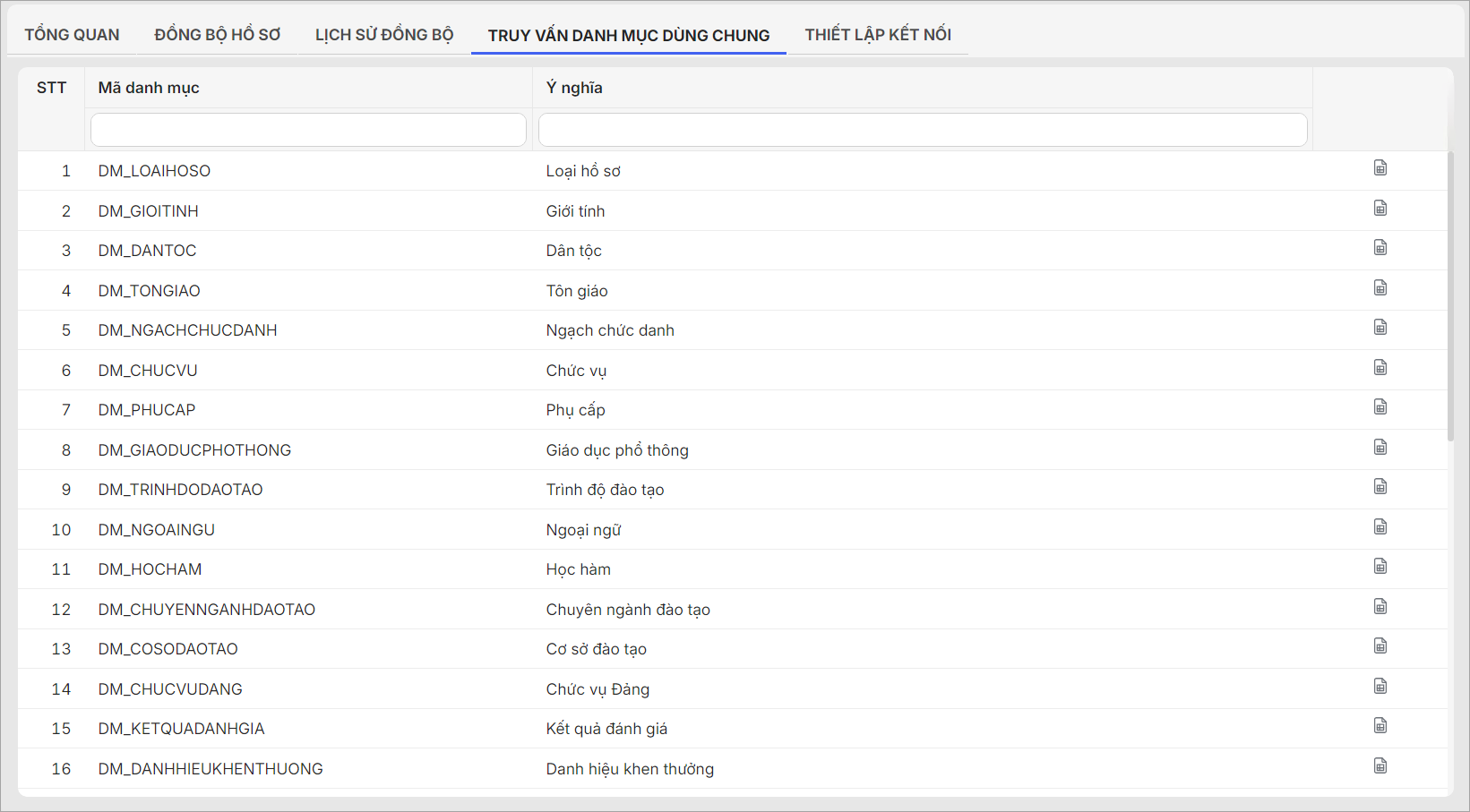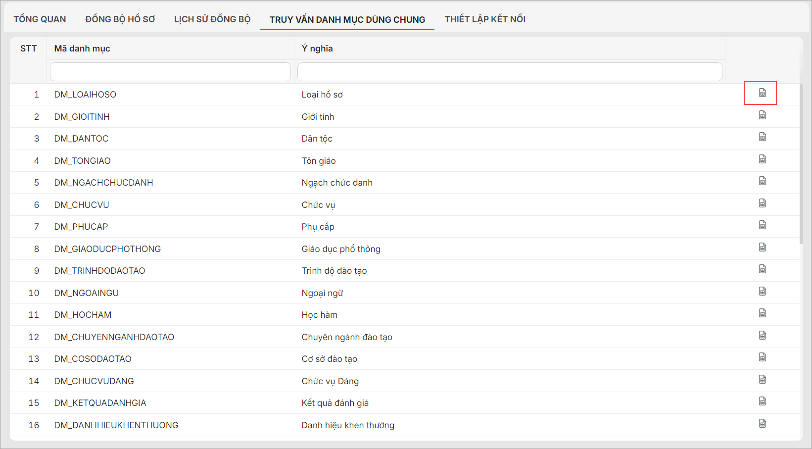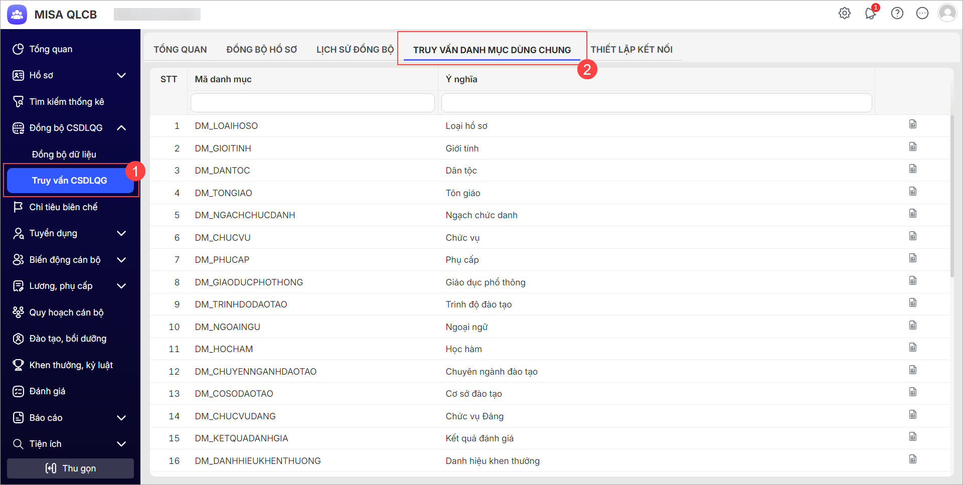 - Tại menu Đồng bộ dữ liệu: Phần mềm bổ sung thêm tab Truy vấn danh mục dùng chung