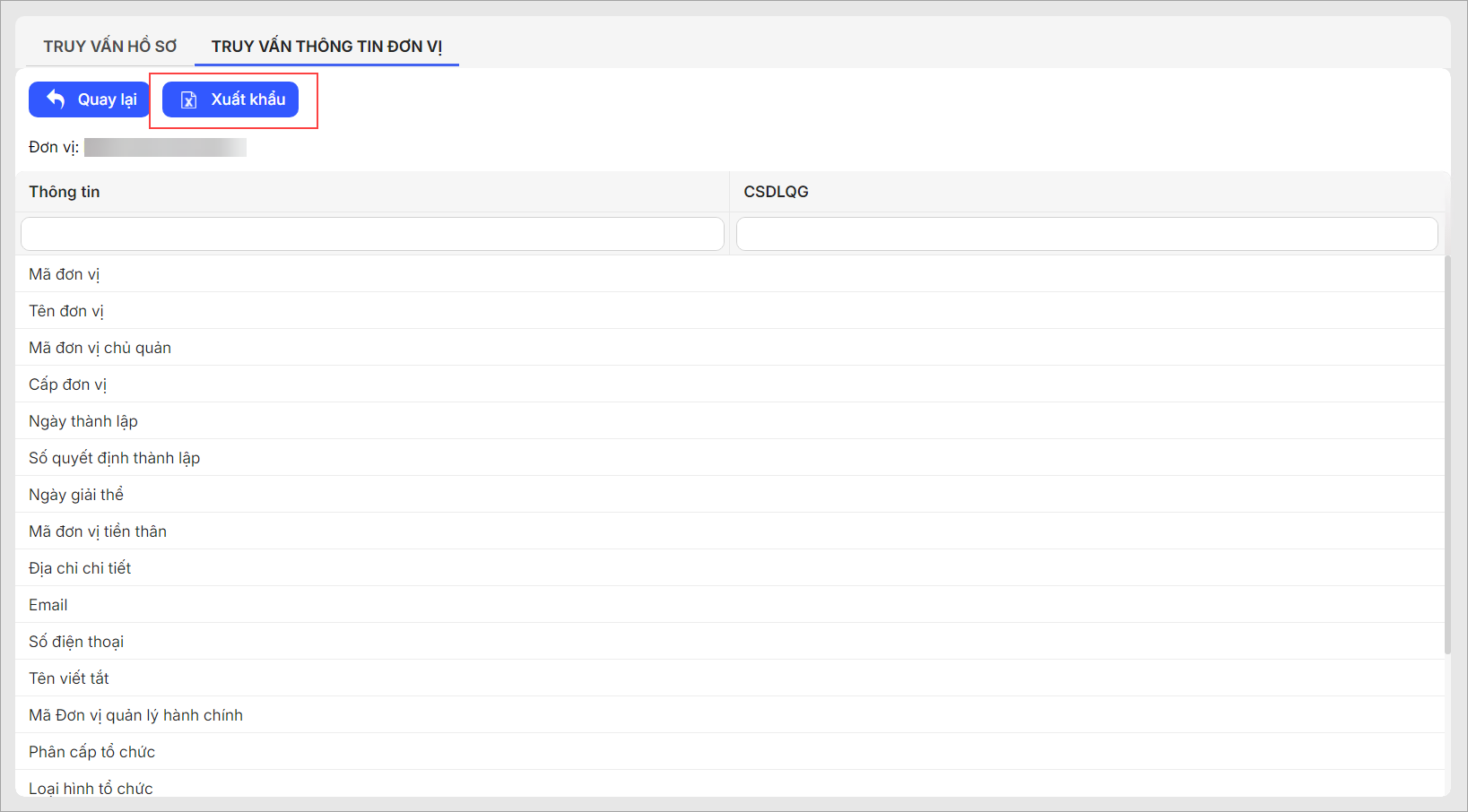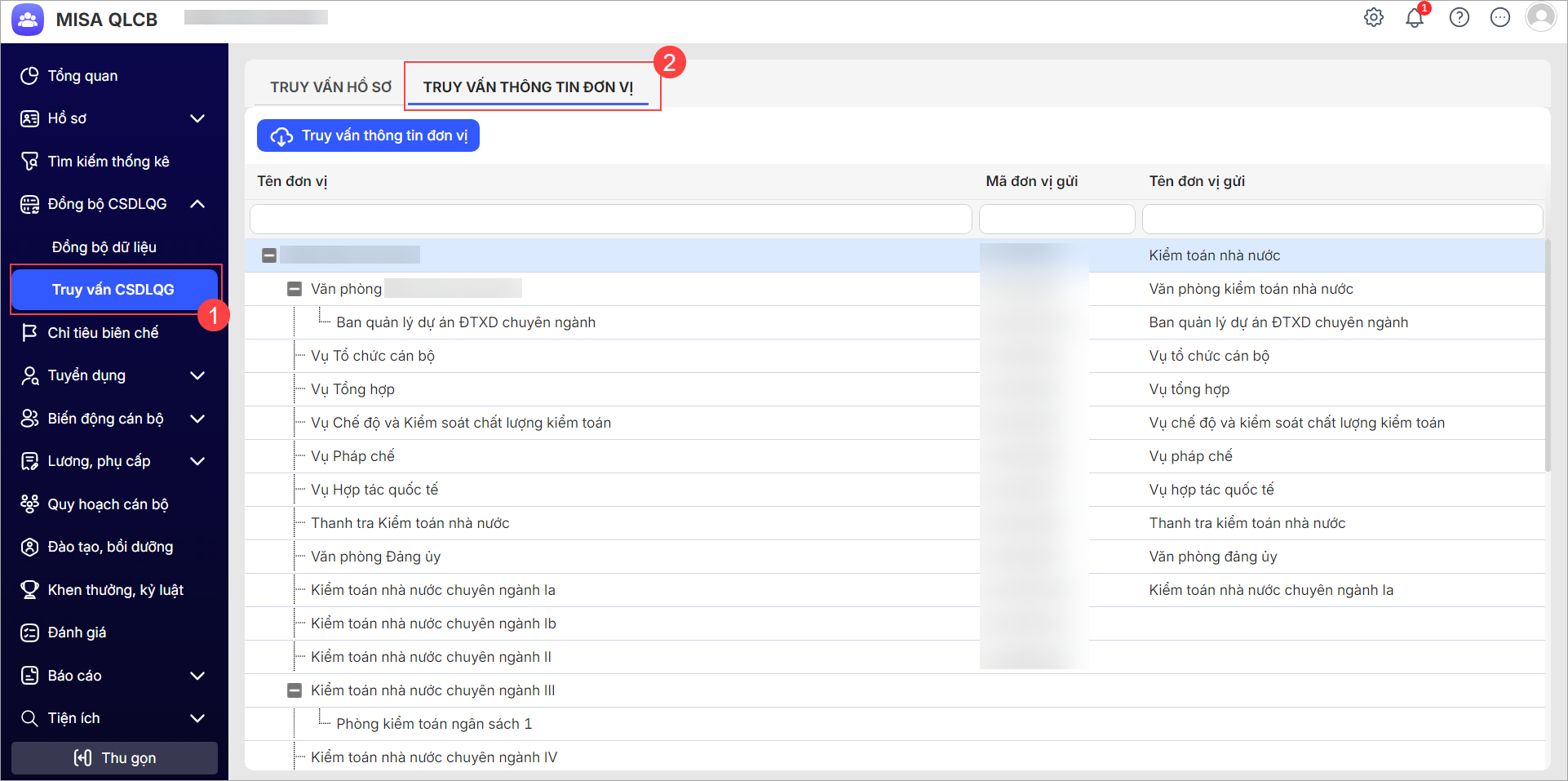 1. Anh/chị vào Truy vấn CSDLQG\Truy vấn thông tin đơn vị