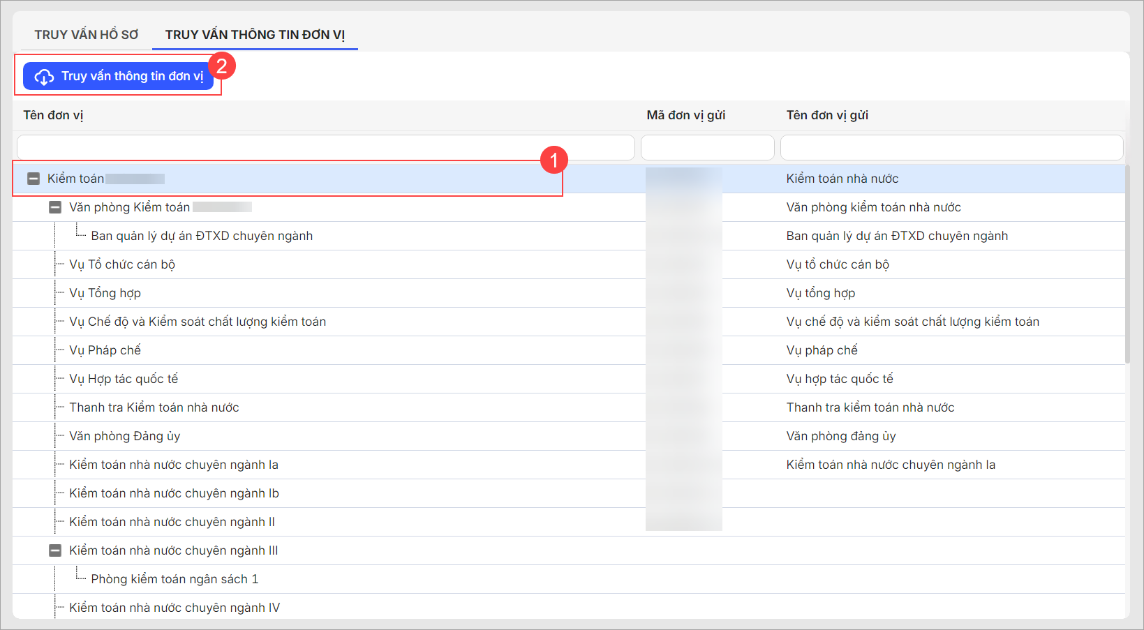 2. Chọn đơn vị muốn truy vấn, chọn Truy vấn thông tin đơn vị