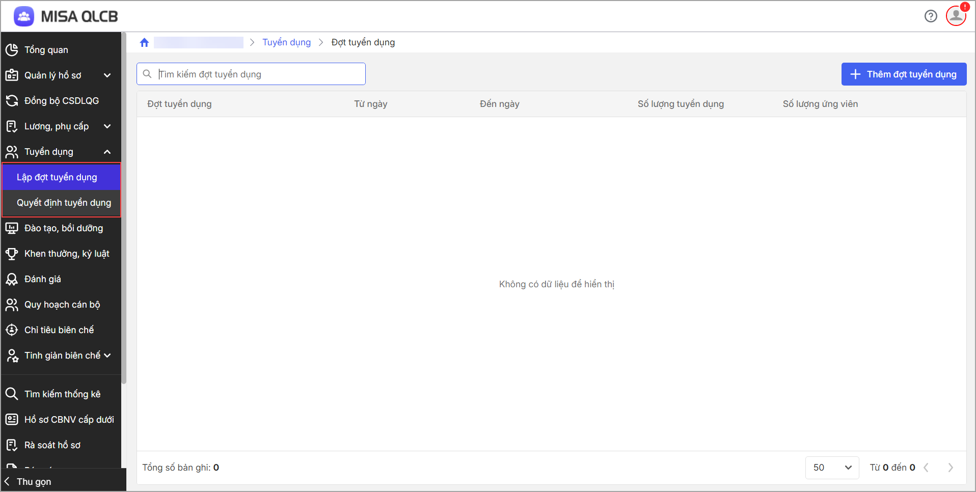 Lập đợt tuyển dụng: Cho phép tạo và quản lý các đợt tuyển dụng theo nhu cầu của đơn vị. Anh/chị xem hướng dẫn tại đây