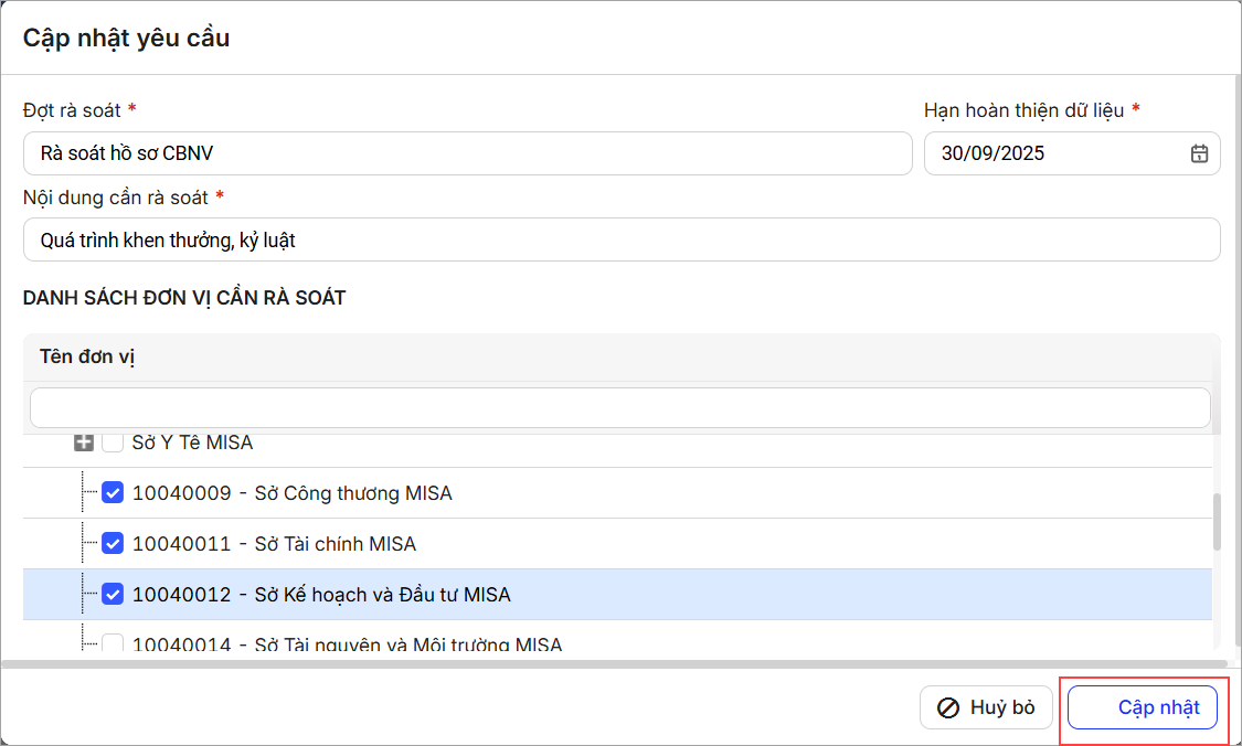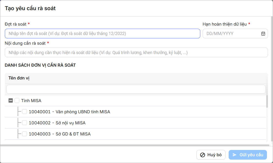 - Đợt rà soát: Nhập tên đợt rà soát.