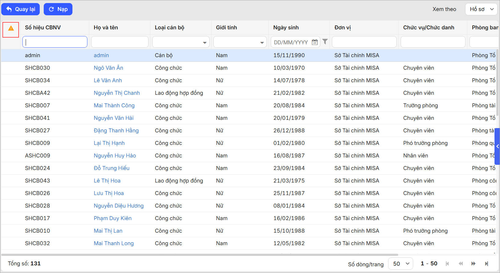 - Những hồ sơ có cảnh báo màu cam là những hồ sơ của CBNV chưa hoàn thiện