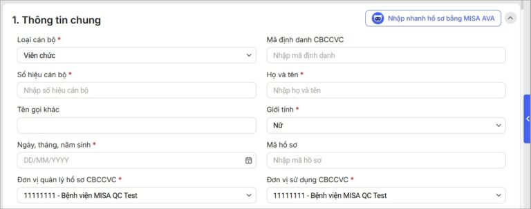 Bài viết này hướng dẫn anh/chị cách khai báo các thông tin cơ bản, Thông tin nơi sinh, Thông tin quê quán, Hộ khẩu thường trú, Nơi ở hiện nay, Thông tin cá nhân khác, Thông tin tuyển dụng trong mục 1. Thông tin chung trên Hồ sơ Cán bộ nhân viên (CBNV).