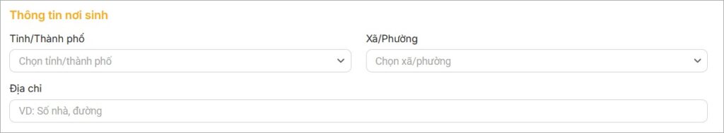 Thông tin nơi sinh là phần khai báo về nơi một người được sinh ra, bao gồm tên Tỉnh/Thành phố, Xã/Phường và Địa chỉ. Thông tin này sẽ căn cứ theo giấy khai sinh của CBNV.