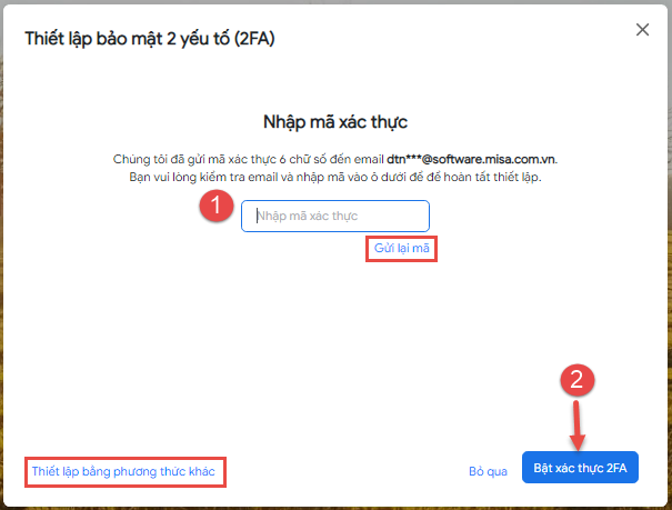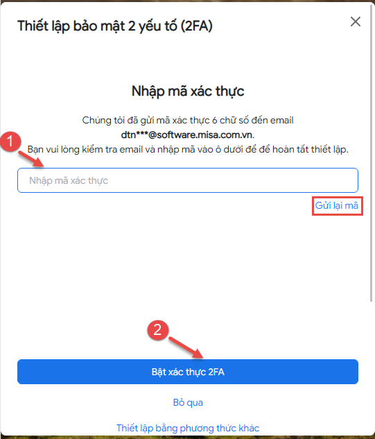 1.2. Thiết lập bảo mật 2FA bằng Email.