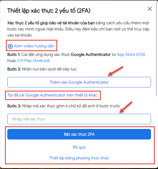1. Thiết lập bảo mật 2 yếu tố (2FA) trên Web.