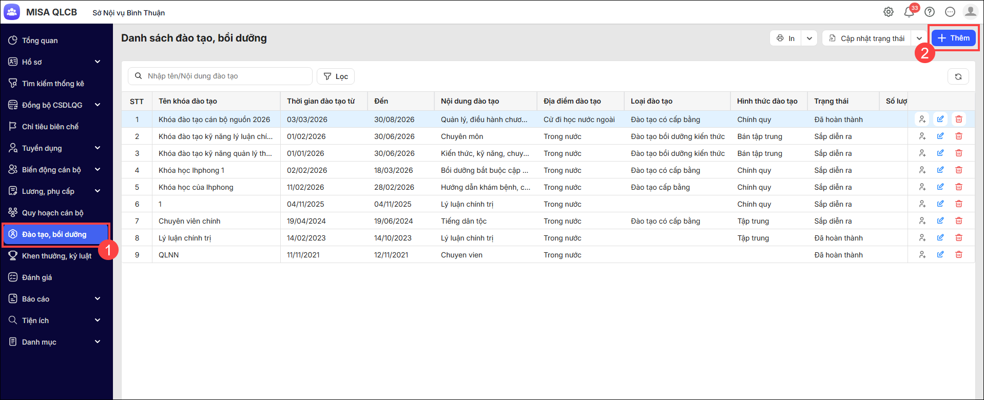 - Vào Đào tạo, bồi dưỡng. Nhấn Thêm