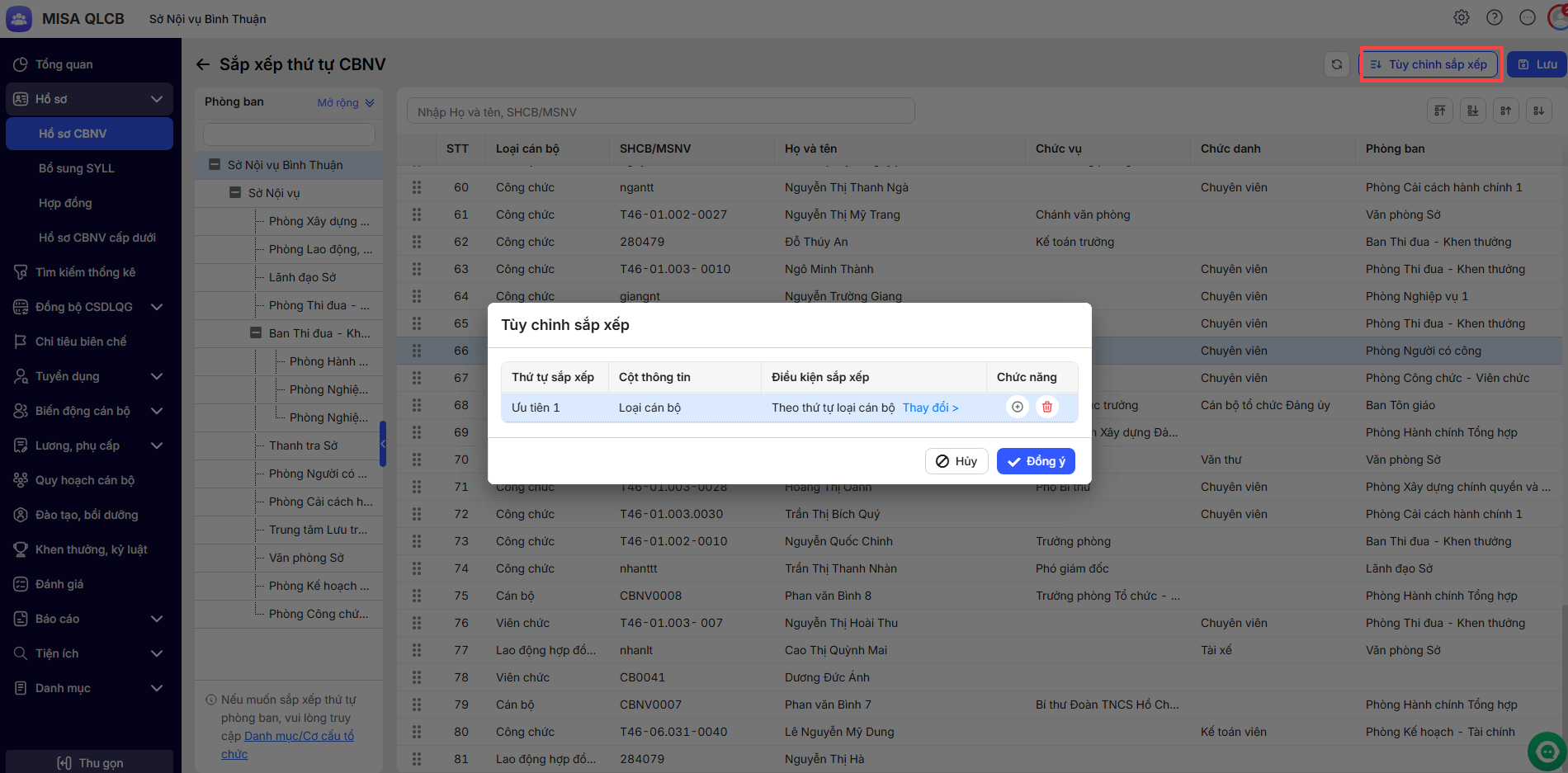 Bài viết hướng dẫn CNBV sắp xếp hồ sơ cán bộ nhân viên theo thứ tự mong muốn của đơn vị.