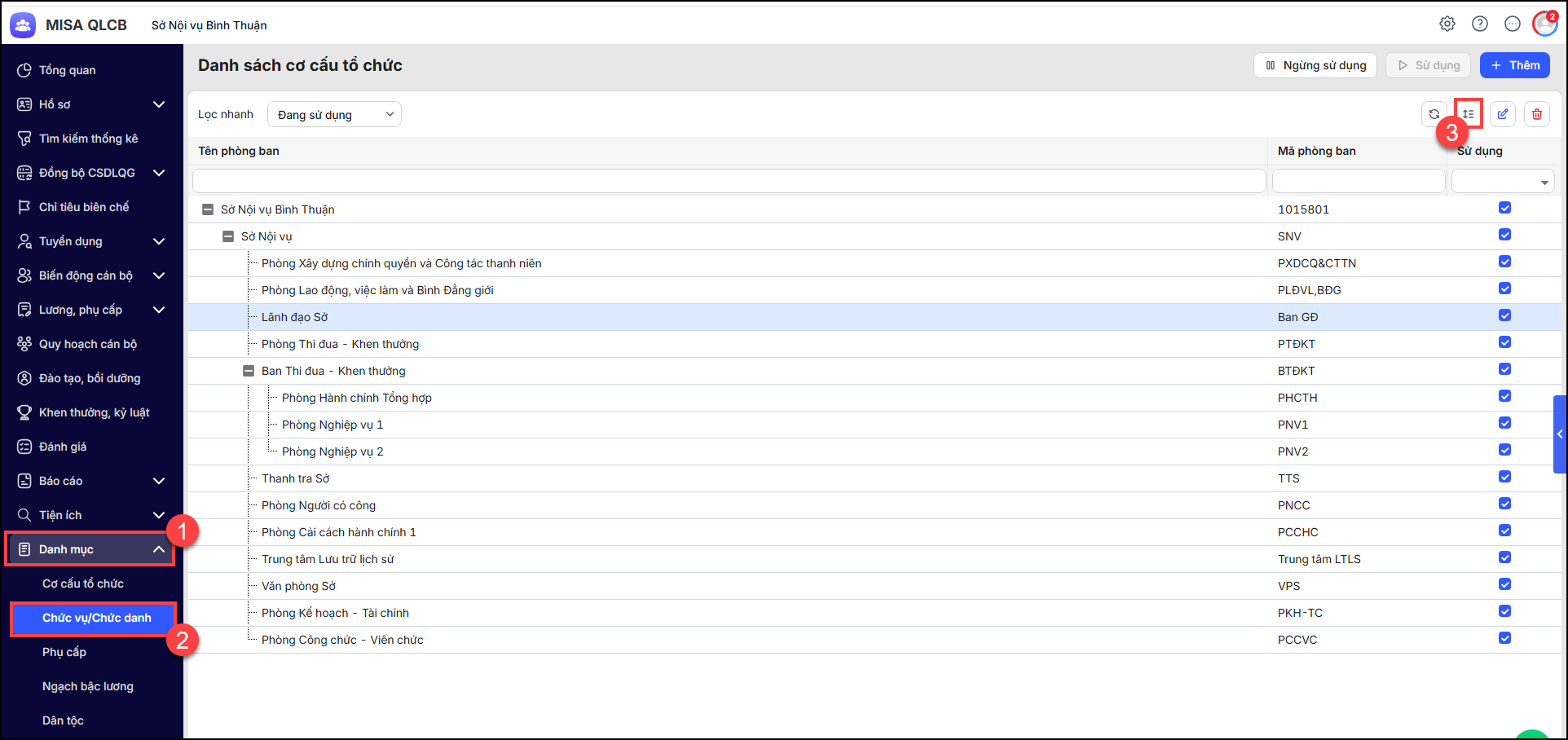 - Vào Danh mục/Chức vụ/Chức danh. Nhấn chọn biểu tượng sắp xếp