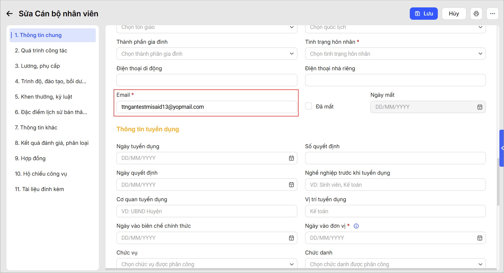 - CBTC cần thực hiện thay đổi email cho CBNV trong hồ sơ và thông tin người dùng tương ứng.