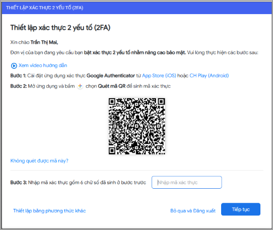 - Sau khi đăng nhập, tài khoản cần được nâng cấp bảo mật tài khoản và bật xác thực 2 yếu tố để đảm bảo an toàn bảo mật cho dữ liệu.