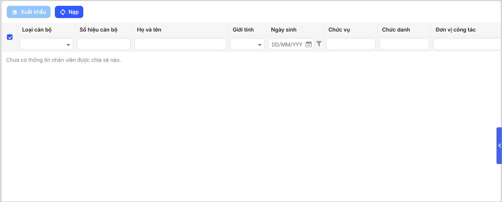 2. Có thể nhấn Xuất khẩu để xuất khẩu danh sách hồ sơ được chia sẻ ra file excel.